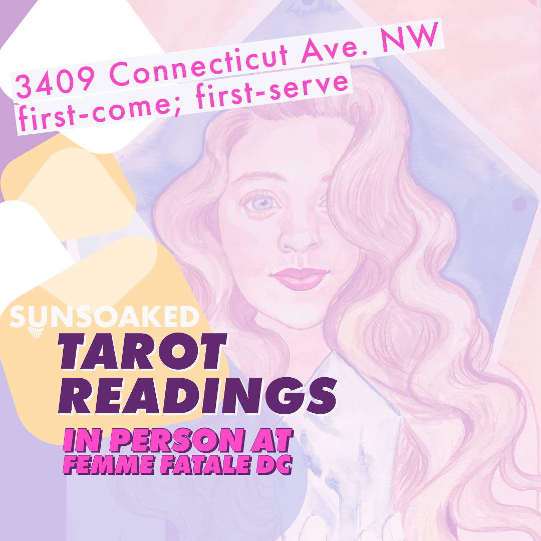 SUNSOAKED Crystals + Energy Practices will be offering first-come, first-serve single-card Tarot readings from 4 - 7 PM. Single card reading for $15 and 10% off a crystal from her pop-up; all crystals stoked in-store will not be discounted. Learn more about crystals, tarot and SUNSOAKED experiences: www.sunsoakedenergy.com